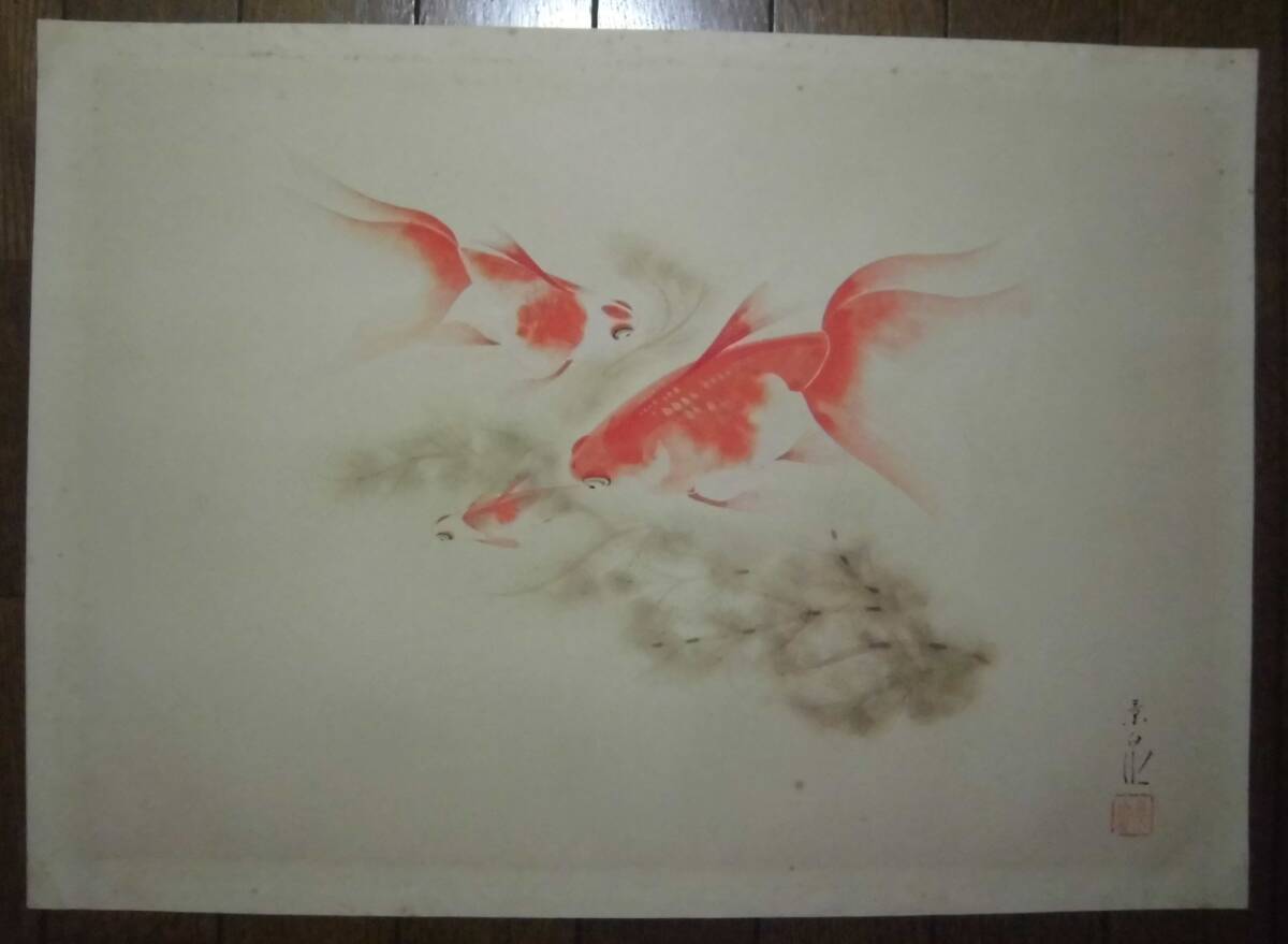 【真作】掛軸 金魚図 優雅に泳ぐ赤金魚 日本画 涼やかな筆致 合箱入 R44 真作】掛軸 金魚図 優雅に泳ぐ赤金魚 日本画 涼やかな筆致 合箱